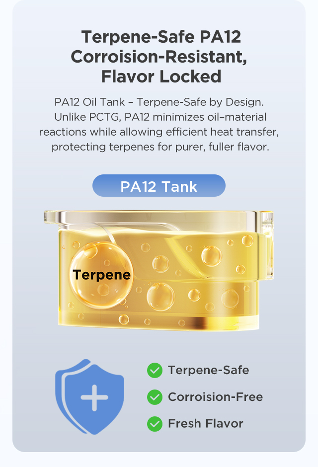 PA12 Oil Tank – Terpene-Safe by Design. Unlike PCTG, PA12 minimizes oil–material reactions while